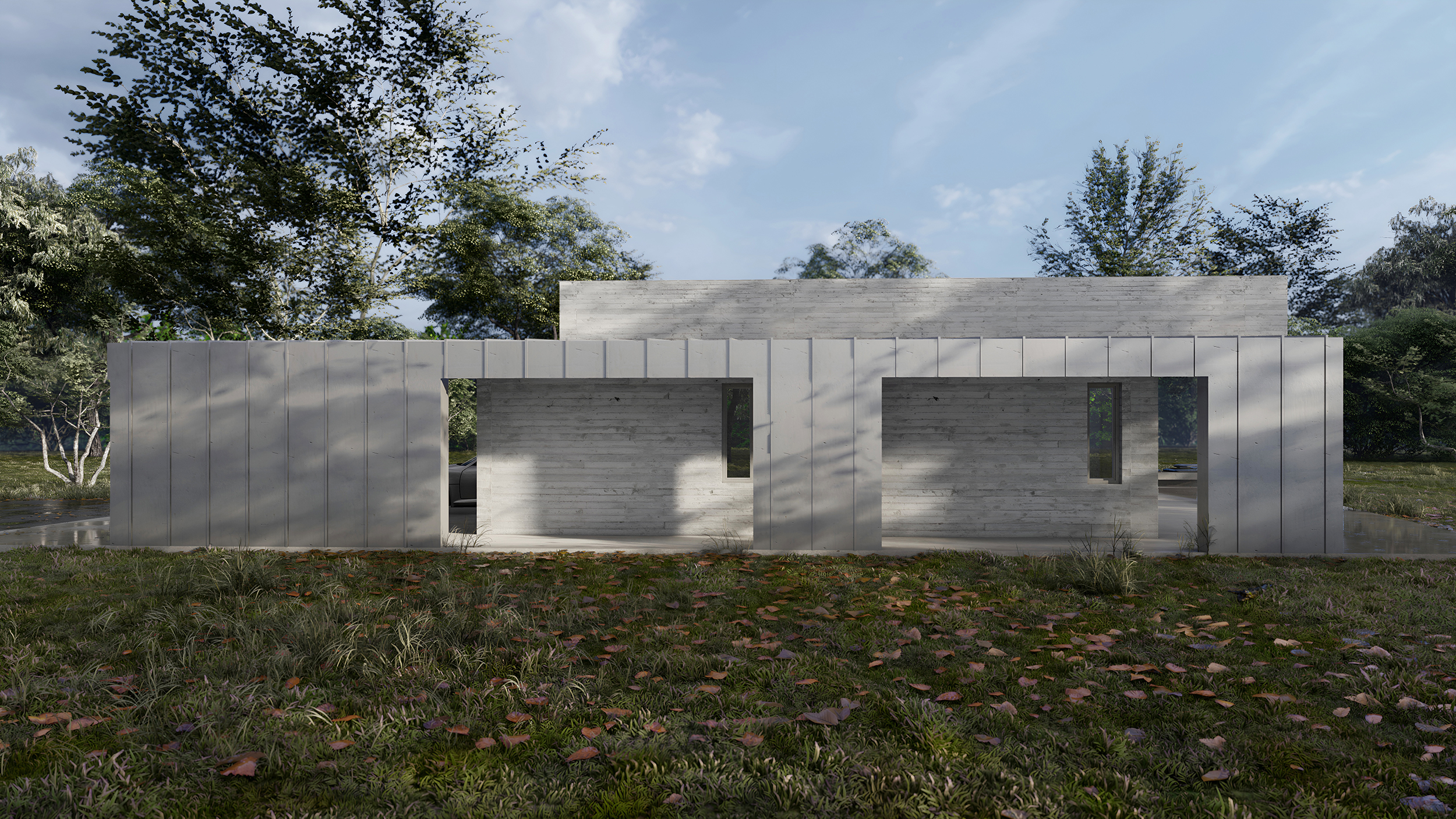 Проект жилого дома с навесом для авто №01